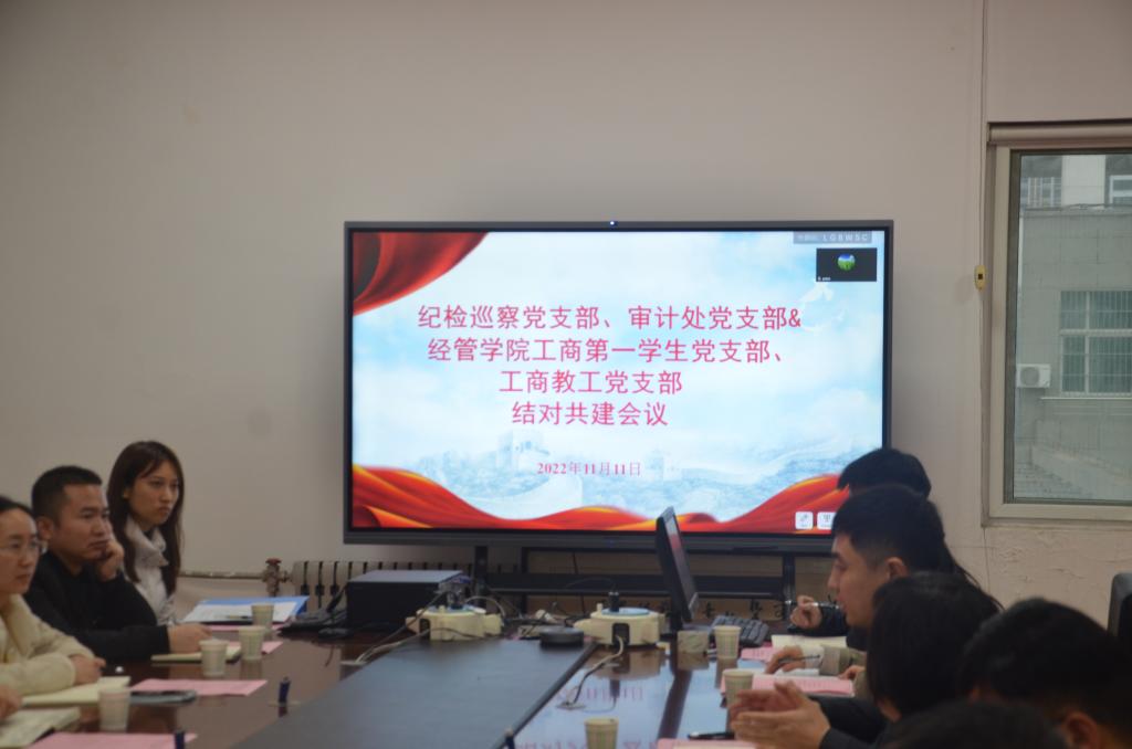 为深入推进机关与学院党建融合,深入学习贯彻习近平新时代中国特色社会主义思想和党的二十大精神,落实立德树人根本任务,加强党建引领作用,近日,在教五楼520举行了机关党委纪检巡察党支部、审计处党支部、财务处党支部与经管学院工商教工党支部、工商第一、第二学生党支部结对共建会议。会议由AC米兰中文官方网站党委书记姬浩主持,总会计师段小存、机关党委书记姜冰清、机关党委副书记陈燕以及各结对共建党支部党员代表参加了会议。