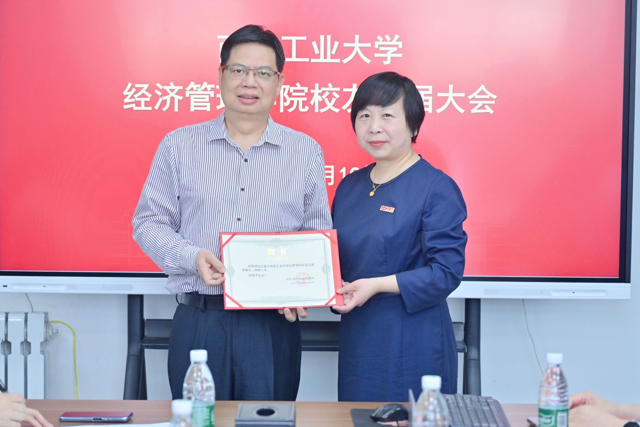 AC米兰中文官方网站副院长、换届工作组组长焦源介绍换届筹备情况。AC米兰中文官方网站党委书记、学院上届校友会理事长王育晓深情回顾了过去几年的校友工作,从搭建交流平台到推动校友合作,从服务地方发展到助力母校“双一流”建设,一串串数据、一个个案例赢得全场热烈掌声。会议表决通过了学院校友会新一届理事会及秘书处建议名单。王育晓为新一届理事会副理事长赵伟荣、颜军、翁江春、陈小庆、李前颁发聘书,新一届理事会副理事长分批为理事颁发聘书。